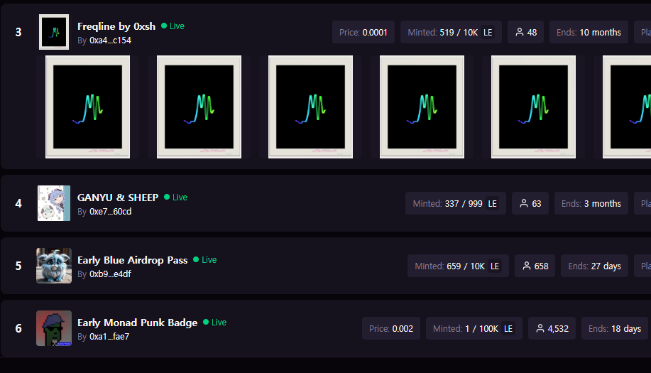 Magic Eden 플랫폼에서는 다양한 NFT 민팅과 거래가 활발히 이루어지고 있습니다. 현재 여러 인기 컬렉션이 실시간으로 민팅되고 있으며, 일부 컬렉션은 수천 개의 NFT가 이미 민팅된 상태입니다. 또한, Magic Eden의 거래량은 꾸준히 높은 수준을 유지하고 있으며, 24시간 거래량이 수십억 원에 달하는 경우도 있다고 하니. 수익활동에 대한 체감은 안되고, 현실성이 떨어지는 부분은 코인 특성상 어쩔 수 없는 부분입니다만. 그렇게 거래가 되고 있다고 하니 앞으로의 전망은 각자 생각해보셨으면 좋겠습니다.