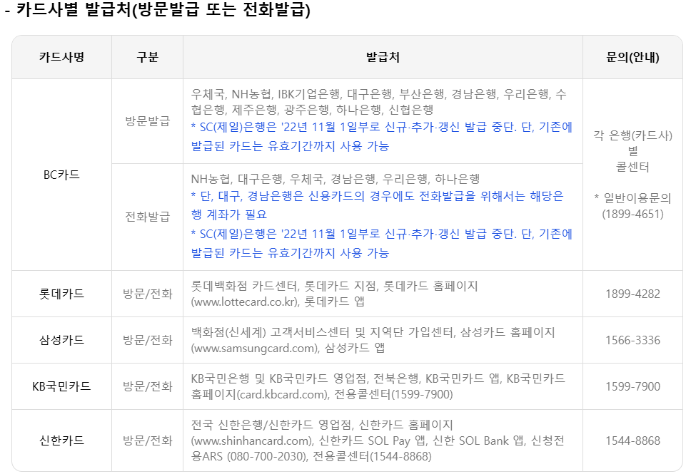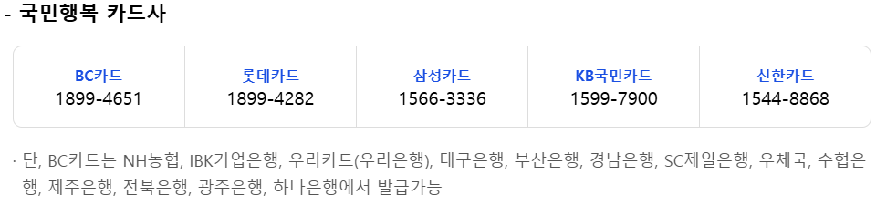 마지막으로 국민행복카드 발급처를 소개하고 마치도록 하겠습니다.