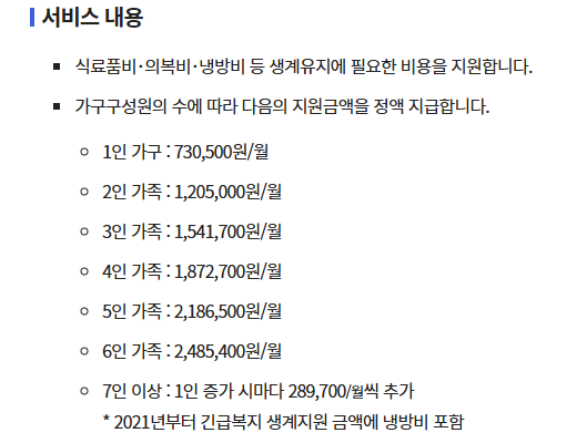 | 유형 1 | 중위소득 75% 이하 가구 | 생계비 지원 가능 |
